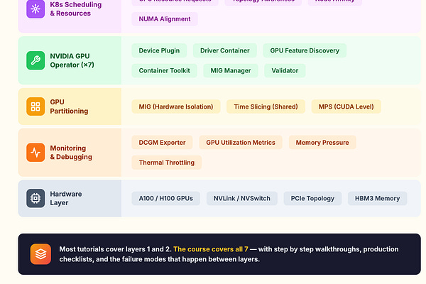 Production Kubernetes for ML/AI workloads: GPU infrastructure, control plane internals, and model serving patterns for engineers running inference at scale.