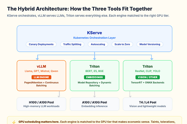 vLLM, Triton, and KServe operate at different layers. Here's what each one does, when to use it, and how to combine them for production model serving on…