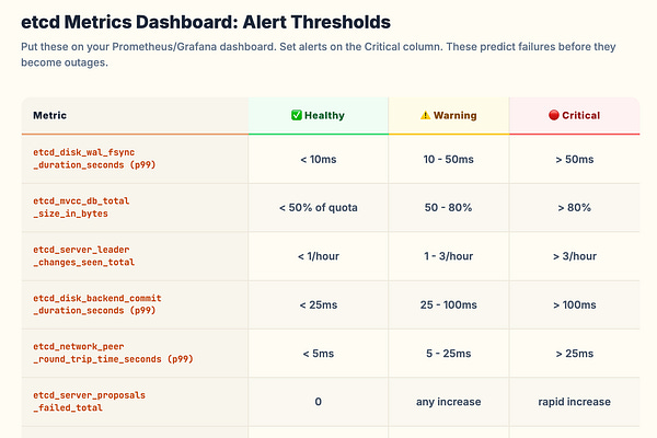 The 5 ways etcd breaks in production Kubernetes, the metrics that predict each failure, and the commands to fix them before your cluster goes read-only.