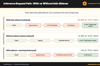 You installed Istio for mTLS and traffic management. Now your vLLM pods take 30 seconds to respond. Here is what went wrong and how to fix it.