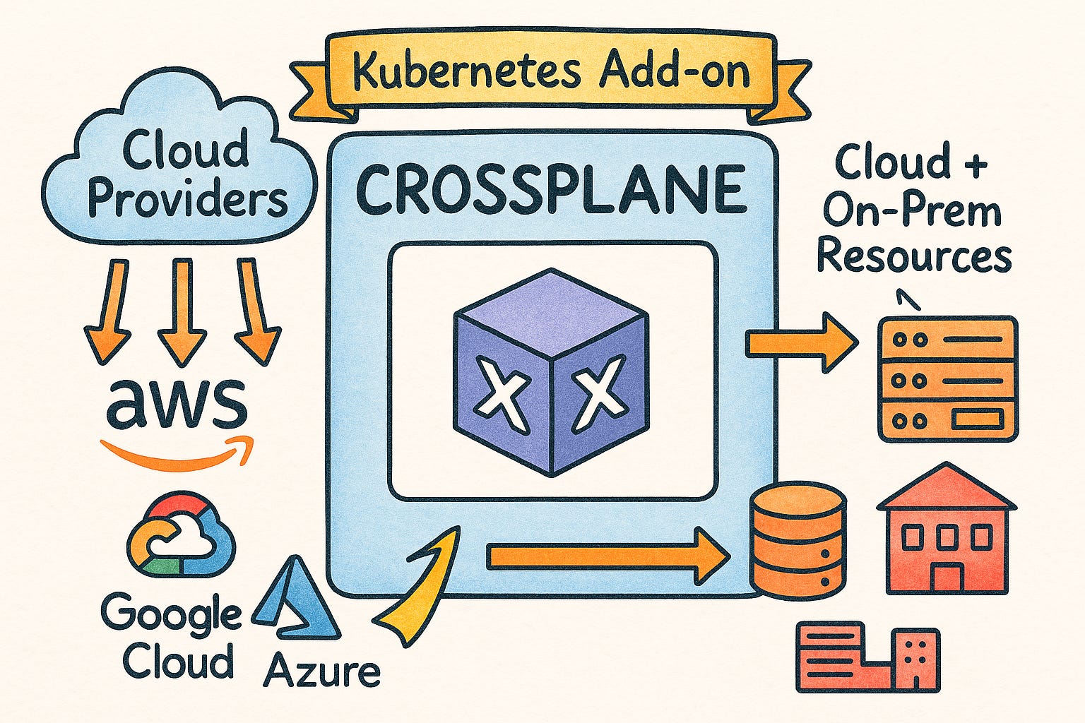 Crossplane is an open-source Kubernetes add-on that enables you to define, provision, and manage cloud resources (databases, storage, networking, compute, etc.) using Kubernetes CRDs (Custom Resource Definitions).