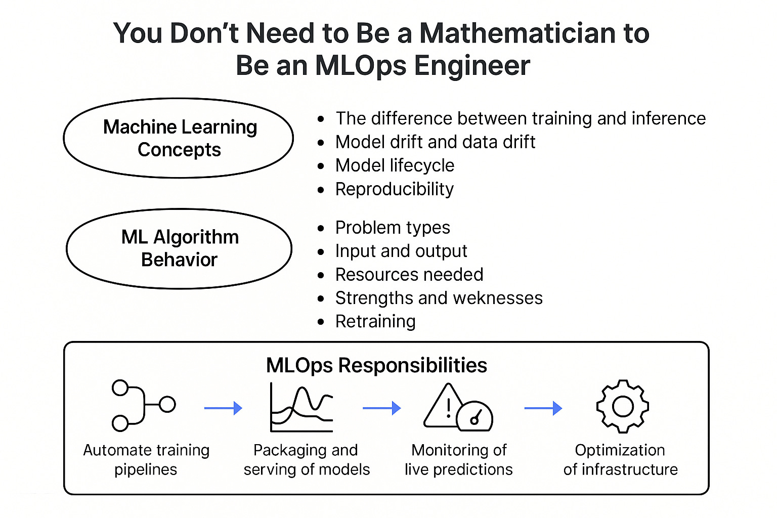 To become a great MLOps Engineer, you don’t need to master calculus, probability theory, or derive the backpropagation algorithm.